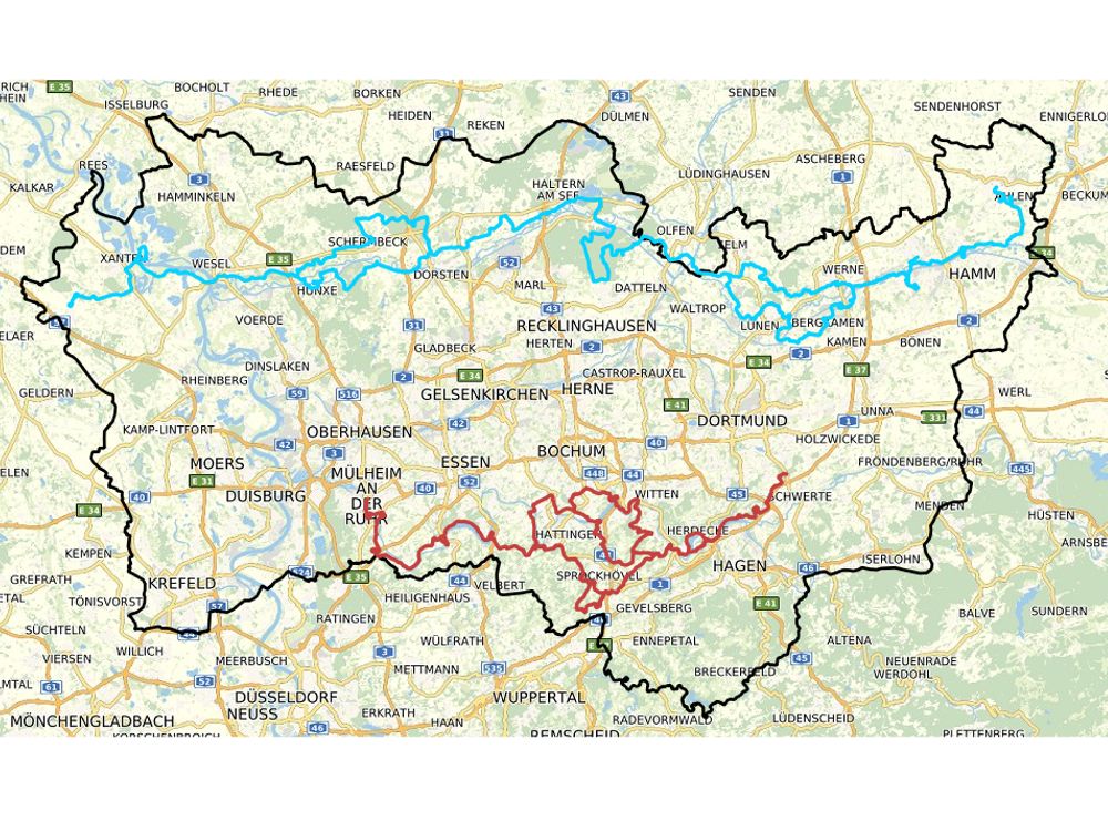 Durch den GeoPark Ruhrgebiet verlaufen in Ost-West-Richtung zwei große Themenrouten: die GeoRoute Ruhr im Süden und die GeoRoute Lippe im Norden. Die GeoRoute Ruhr ist als Wanderweg konzipiert und thematisiert schwerpunktmäßig den historischen Steinkohlenbergbau. Die GeoRoute Lippe, ein Radwanderweg, zielt auf die Landschaftsentwicklung und die Rohstoffnutzung im nördlichen GeoPark ab. Zu beiden Routen hat der GeoPark einen Führer mit Stationsbeschreibungen und Kartenmaterial herausgegeben.