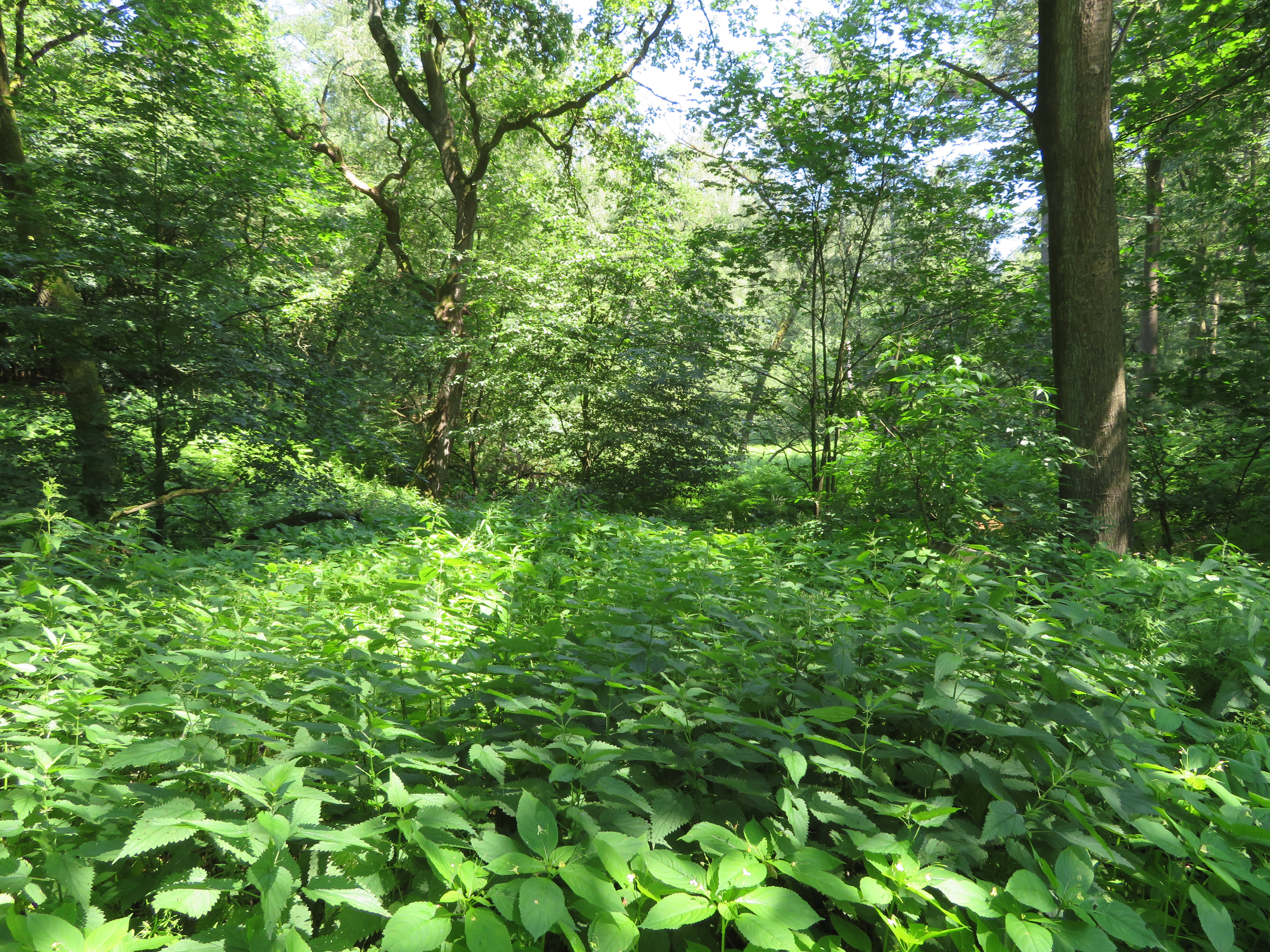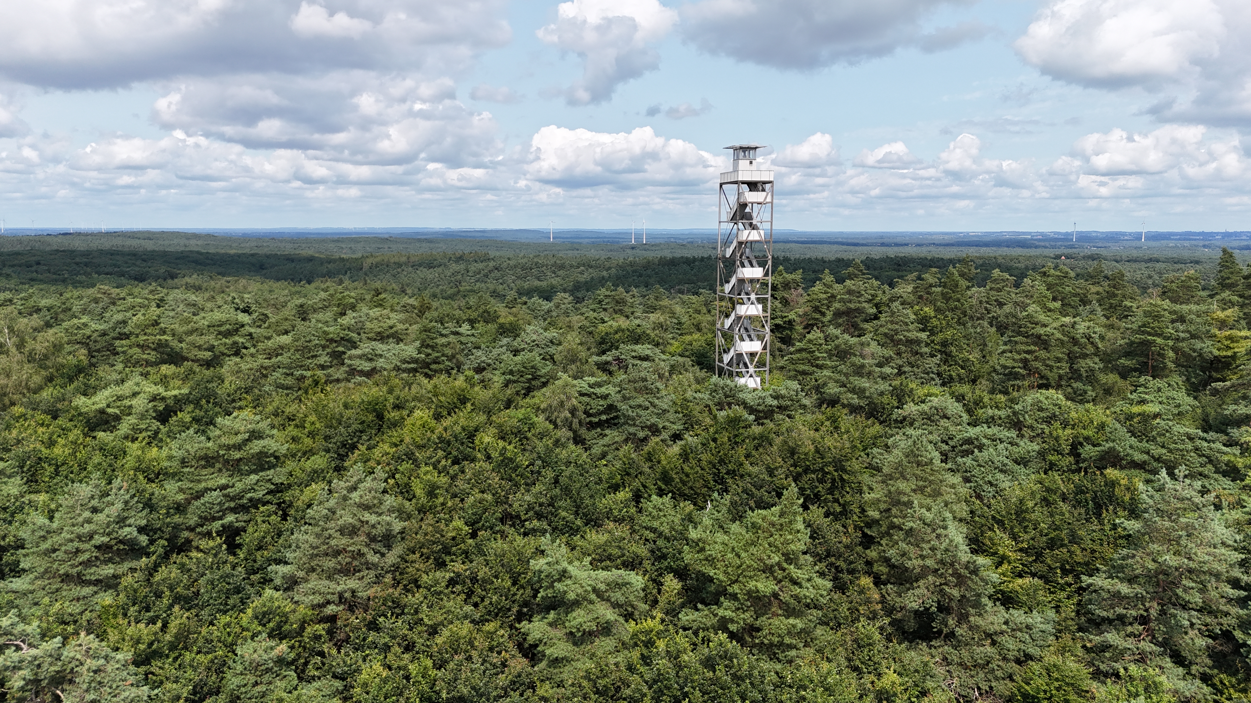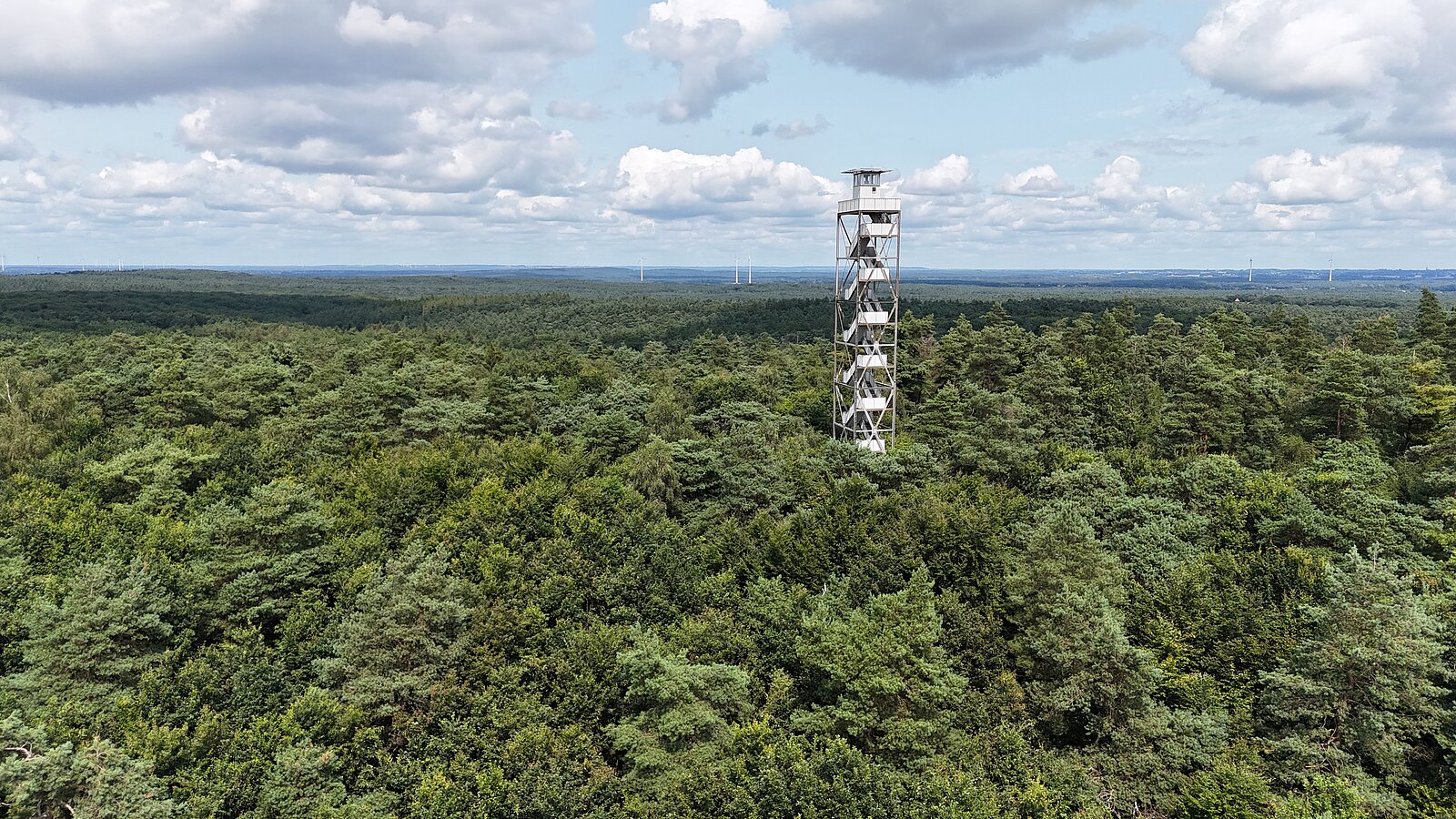 Nach Querung der Lippe in Richtung Süden erreichen wir die Haard. Neben der Hohen Mark ist die Haard mit einer Gesamtwaldfläche von über 5500 ha das größte zusammenhängende Waldgebiet im Naturpark „Hohe Mark"[1]. Haard, Borkenberge und Hohe Mark werden als „Haltener Berge“ zusammengefasst und sind jeweils durch Hügel und dazwischen eingeschnittene Trockentäler gekennzeichnet. Feuchte Senken kommen vor, sind aber aufgrund des sandigen Untergrundes insgesamt selten. Der Stimberg [2] im Süden der Haard ist mit über 157 m ü. NHN die höchste Erhebung der Haltener Berge.